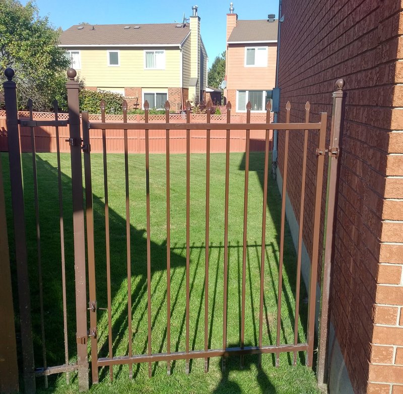 - Strong vertical pickets deter climbing
